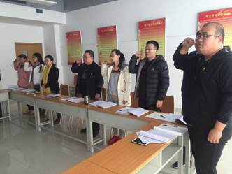 机电工程系党支部副书记孙亚茹同志带领支部与会党员开展党员宣誓。