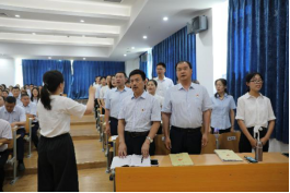 不忘初心忆岁月峥嵘,牢记使命谱时代新篇。6月26日,学院隆重召开庆“七一”表彰暨“不忘初心、牢记使命”主题教育启动大会,庆祝中国共产党成立98周年,传唱红歌,重温誓词,表彰先进,抚今追昔。学院党委书记孔祥奴、党委副书记潘慧、纪委书记耿晓明、党委委员冯喜成、党委委员孟祥云以及全体教职工参会。大会由纪委书记耿晓明主持。