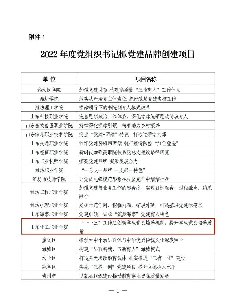 2022年5月13日,中共潍坊市委教育工委和中共潍坊市教育局党组发布《关于公布2022年度党组织书记抓党建品牌创建项目、战疫育人主题思政课“金课”和课程思政精品课的通知》,共确定了44个2022年度教育系统党组织书记抓党建品牌创建项目、72节优秀思政课“金课”和65节课程思政精品课。我校管理工程学院党总支的《“一一三”工作法创新学生党员培养机制,提升学生党员培养质量》、基础教学部马玉彤的《伟大抗疫精神——举国同心,舍生忘死》和管理工程学院楚红兰的《战疫情保民生,物流运输在行动——公路与航空运输》分别入选潍坊市委教育工委2022年度党组织书记抓党建品牌创建项目、潍坊市战疫育人主题思政课“金课”和潍坊市战疫育人主题课程思政精品课。