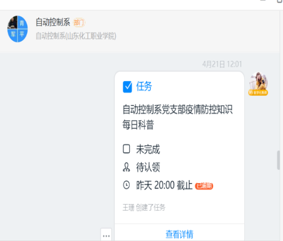 为推动创建学习型党支部,支部自4月21日起于系部钉钉群发起了疫情防控知识每日科普活动,使党员及群众把疫情防控知识学习的扎扎实实,作为支部强有力的理论保障。