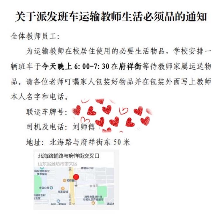 “什么?潍城的班车困在市里出不来了”?“学校正在积极调度,了解现场情况,大家不要担心!”刚到办公室,第二个“瓜”从我平时坐班车的群里蹦了出来,“啊,幸好昨天呆学校没回家,要不我也不好来上班了”我暗自庆幸。当我烧完水再次打开群消息时,学校已全面了解潍城线班车教师情况,并增派班车前往。嗯,学校速度还挺快,我想。