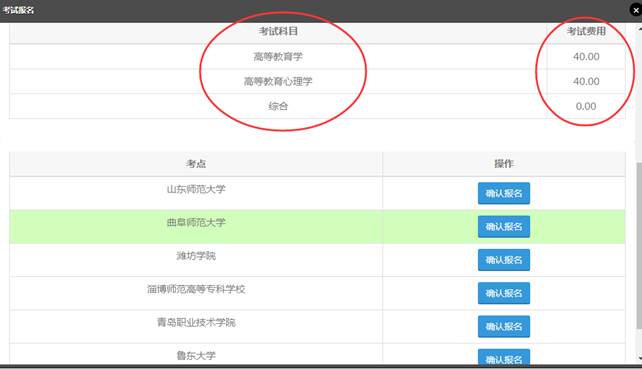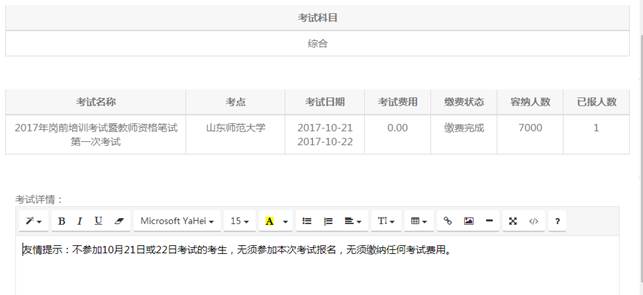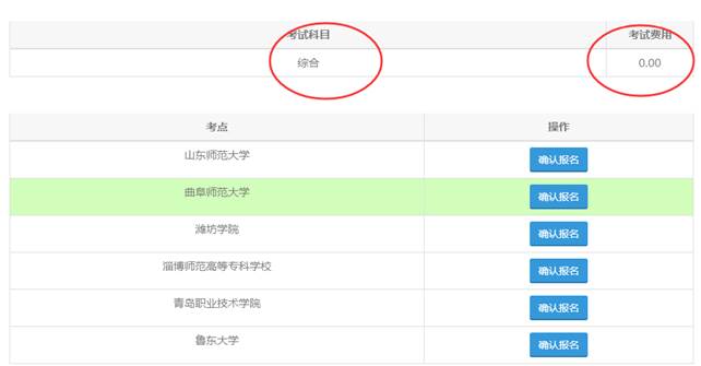 例如:点击“山东师范大学的确认报名”,确定之后显示如下: