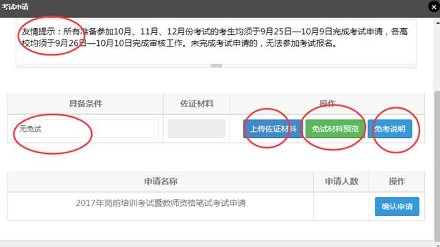 1)如果属于不免试的人员,可以直接点击“确认申请”,显示如下: