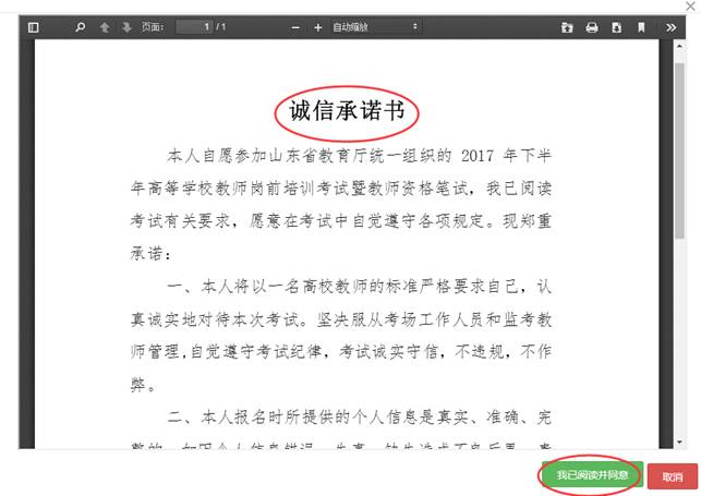 2.如果是不免考的考生,点击“我要报名”,则弹出诚信承诺书的界面,如下图: