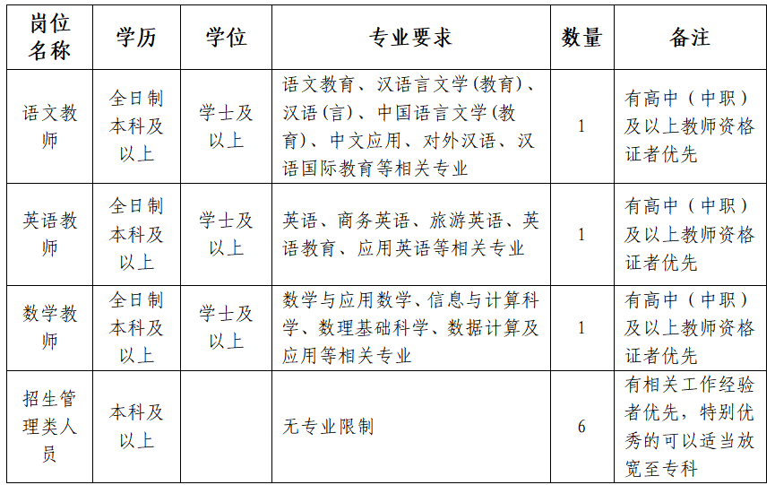 根据学校教育教学改革发展需要,拟面向社会公开招聘劳务派遣教师3人、招生管理类人员6人,工作地点在滨州博兴。现就有关事项公告如下: