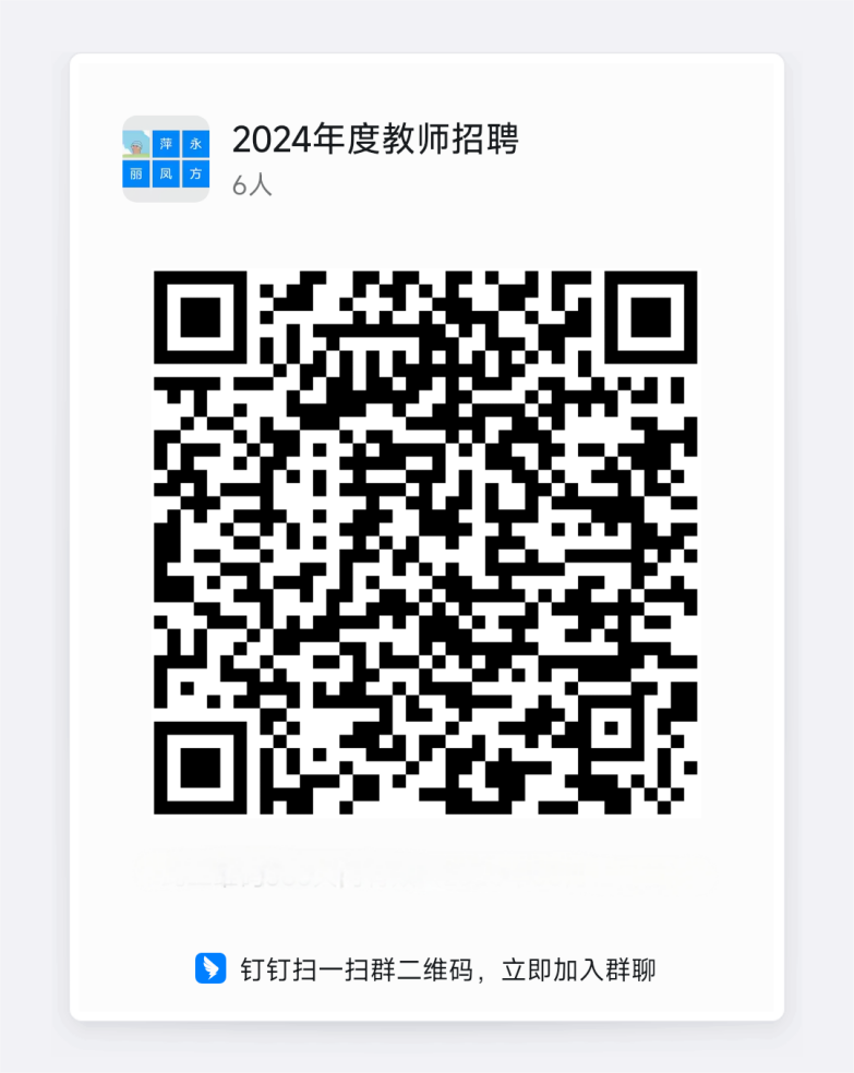 为方便履行招聘程序,请所有进入公示范围的考生扫描以下二维码进入钉钉群,进群后请把群内名称改为真实姓名。